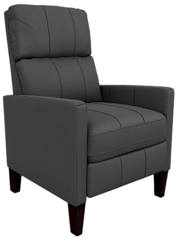 The Janae recliner has a modern aesthetic that can easily complement or define a room with the clean lines, sleek track arms and tapered wood legs…all perfectly scaled to fit any space. Tall, double cushion back allows adjustment to the amount of pillow fibers in the top back cushion to customize your comfort.Read More