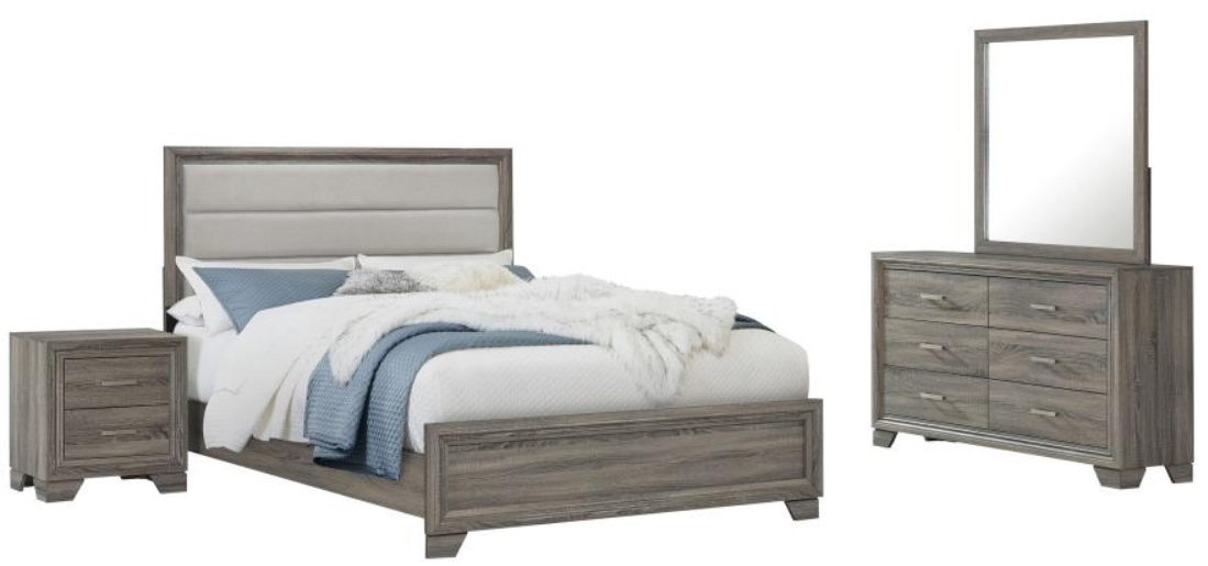 Includes: One (1) eastern king bed, one (1) nightstand, one (1) dresser, one and (1) dresser mirror