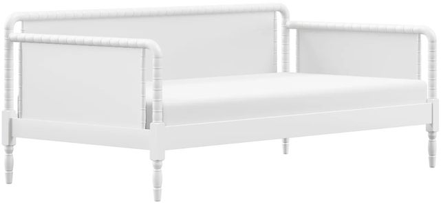 Crafted from solid pine wood in a White finish, this traditional twin daybed features side and back panels accented with classic spindles. Turned legs are a nice touch that elevates the bed's timeless appeal. Classic and sweet, this daybed adapts to many bedroom decor styles. Slat system means no box spring required. Twin mattress required, not included. Assembly required.