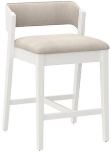 The framework of this counter height stool is sleek and styled for comfort. The upholstered back and seat boast a light beige fabric accented by a distressed white finished wood frame. The wood extends around the low-profile back, which is set at a comfortable and attractive angle, further accentuating the stool’s midcentury modern appeal.Read More