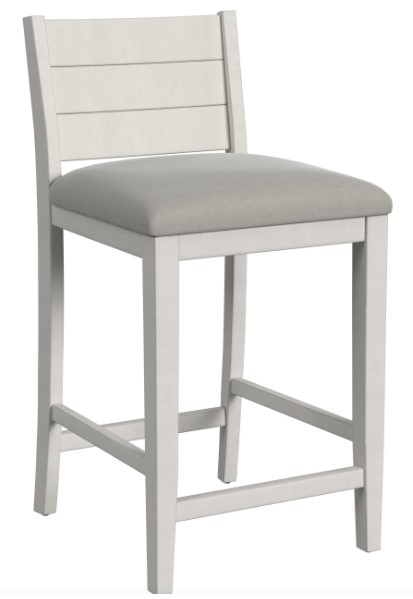 The slat back pattern is complemented by a fog fabric seat on a straight leg wood base with footrest providing comfort and stability. This charming wood stool is sure to impress your guests with coziness and style. Assembly required.