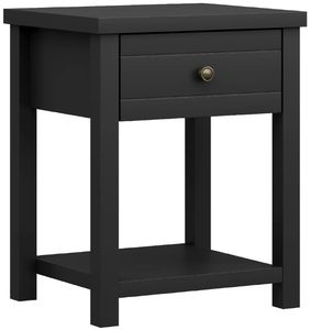 Wood accent table with drawer and shelf finished in black