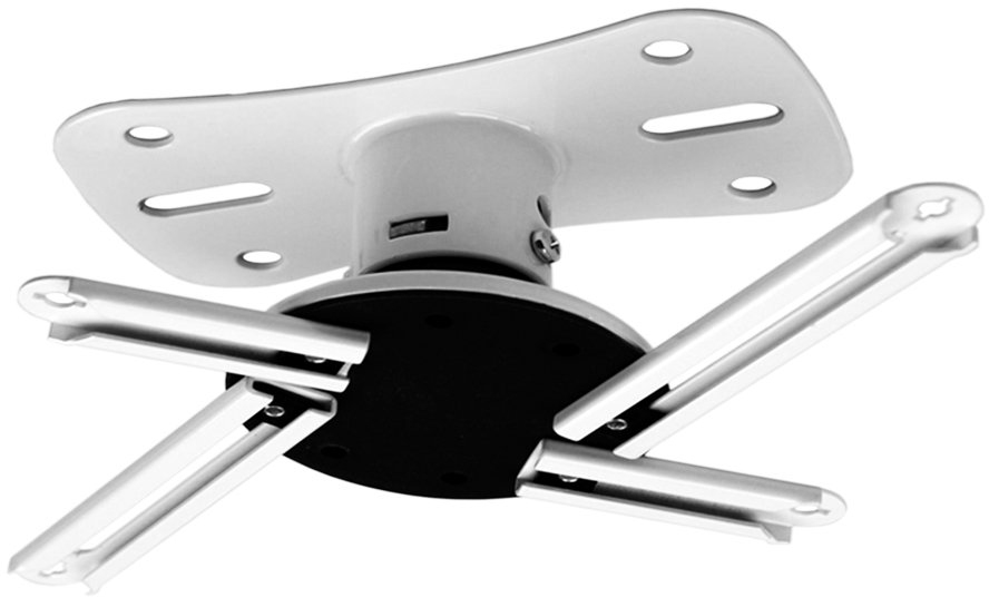 Easily mount your projector to your ceiling. This universal projector mount is most commonly used in boardrooms and offices, but is also ideal for home theatre applications. It features a 360° ball swivel, tilt capability, and can be extended between 9” and 12” from the ceiling. Included is a full set of extension arm lengths and projector mounting hardware to ensure that your installation has all the tools it needs from the get-go. We don’t provide the hardware to mount to your ceiling – there are just too many variables involved. Available in classic black and white finishes.
