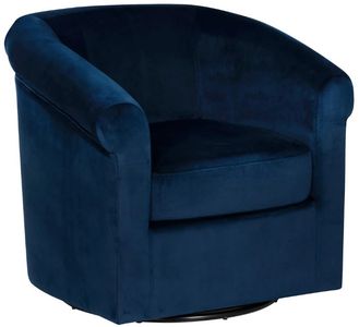 Navy Blue Velvet Upholstery: Cloaked in sumptuous navy blue velvet, this upholstery exudes elegance with its soft texture and subtle sheen. The rich fabric lends comfort and sophistication, making it a refined yet inviting addition to any space