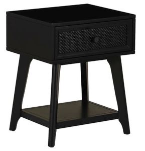 Warm and textural, this black or natural wood end table brings an organic feel and versatile style to bedroom and living room ensembles. A woven cane drawer front adds depth and detail to the light rubberwood frame, while gently flared legs and an open lower shelf keep the silhouette feeling airy and balanced.Read More