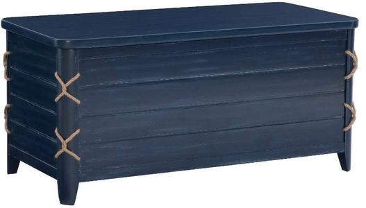Whether placed at the foot of the bed for linens or used as a coffee table in your living room, this versatile rope cedar chest adds both style and function. Painted in a timeless navy finish with paneled details and genuine rope trim, it brings a touch of coastal-inspired charm to any space.Read More