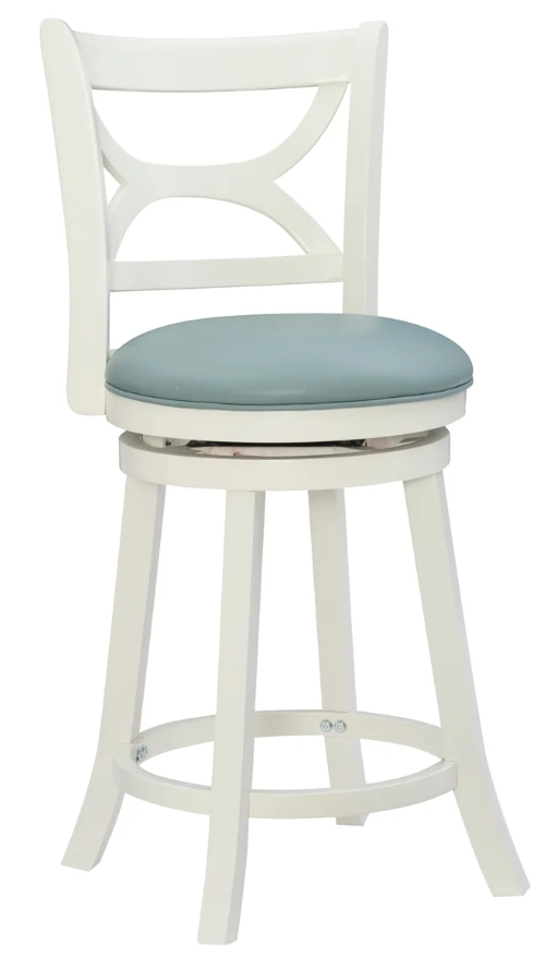 Bring trending fashion home with a barstool offering casual, country charm that suits the mountains, seashore or anywhere in between. With an open design wooden back, cream finish and circular seat upholstered in sky blue, easy care faux leather, the barstool is comfortable, stylish and generates a relaxed vibe.Read More