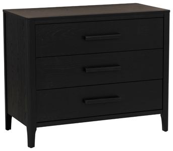 Sleek, structured, and designed to keep things tidy—this 3-drawer dresser brings contemporary appeal to any bedroom or guest space. With a black lacquer finish over oak veneer and MDF panels, it offers a clean-lined silhouette accented by matching bar pulls. Rubberwood legs add stability, while the spacious drawers provide functional storage for clothing.Read More