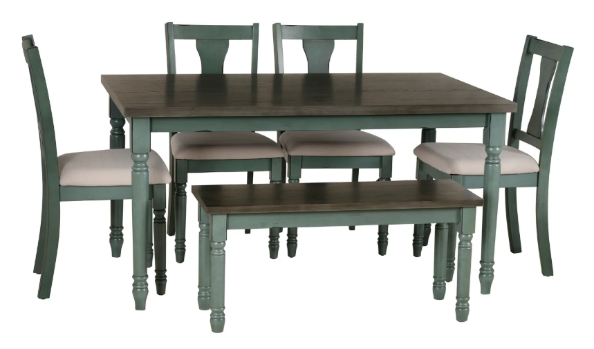 Charming Rustic Design: The rich teal blue base and burnished tabletop create a stunning contrast, adding warmth and character to your dining space.