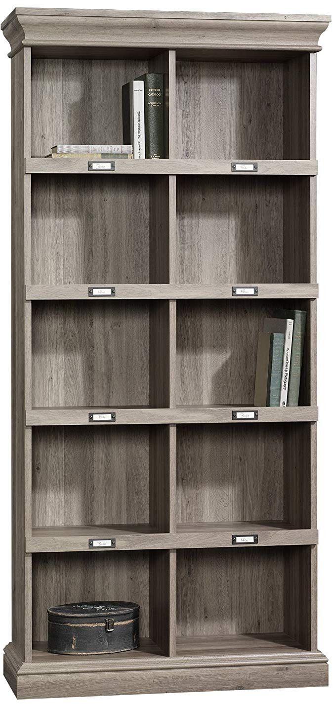 Create versatile storage options in your home without sacrificing style with this tall bookcase from the Barrister Lane collection. This handsome bookcase features ten storage cubbyholes for you to organize, store and display all your around home essentials – your collection of cookbooks, decorative knick-knacks, miscellaneous office supplies and bins full of house hold items too. It has a place for all your stuff! Each cubbyhole accommodates an ID label tag so you can keep your home organized and clutter free. Easily label each cubby so you can find what you are looking for fast! Its convenient storage options and beautiful style make this bookcase a perfect fit for any room in your home – in your office, the living room, down the hallway or even in the bedroom! It looks good no matter where it stands! Finished in Salt Oak, this one-of-a-kind tall bookcase is the solution to all your storage woes.