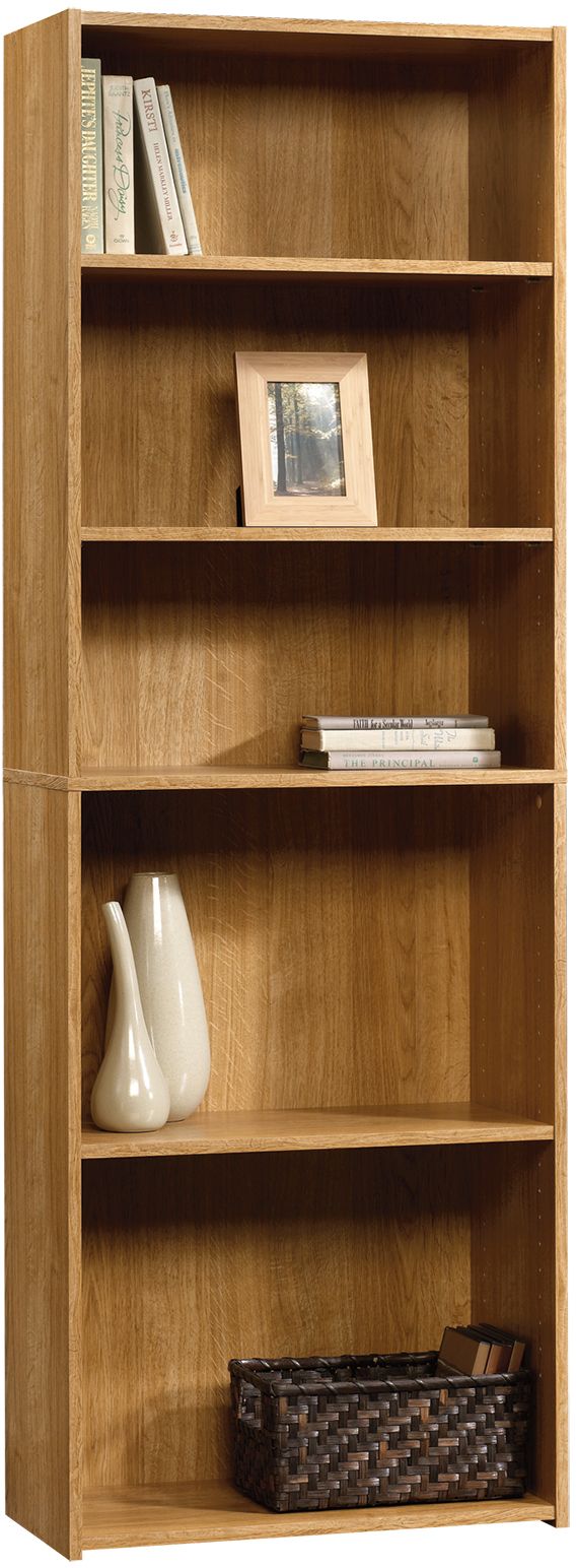 | Description: | Sauder Five Shelf Bookcase with three adjustable shelves and enclosed back panel |