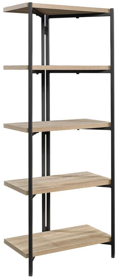 Showcase all your favorite things with this bookcase from the North Avenue collection. It features five, 1” thick shelves, perfect for holding and displaying collectibles, plants, photos and more! Finished on all sides with a powder coated metal frame and Charter Oak finish, this versatile bookcase will be the highlight in any room.