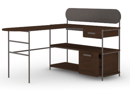 Throwback is in: merge the old and the new together with the modern L-shaped desk from the Radial™ collection. This metal and wood desk features a storage drawer with metal runners and safety stops to store your desk essentials like pens, paper, and your stapler. The lower drawer of this home office desk includes full extensions slides and holds letter-size hanging files, so your important documents are organized and easy to find when you need them. The desk return can be fastened on the left or right side of this L-shaped desk for your personal customization. This computer desk with storage is finished on all sides—meaning you can rearrange your home office as much as you like and can be assured that your desk will look good from every angle. Additional details of this modern metal desk include a textured, powder coated metal frame, a perforated upper panel and cord management trough that add to the style and function of this item. Finished in Umber Wood™, this modern L-shaped computer desk combines industrial and contemporary design inspired by nostalgic glam for a beautiful, functional desk for your home.