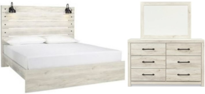 Includes king panel bed (headboard, footboard and rails) and 6-drawer dresser