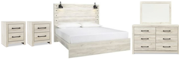 *Bed, dresser with mirror, and two nightstands only, all other items are sold separately. Images may not reflect the actual size. Color in images may differ in person; see the retailer for the actual finish.