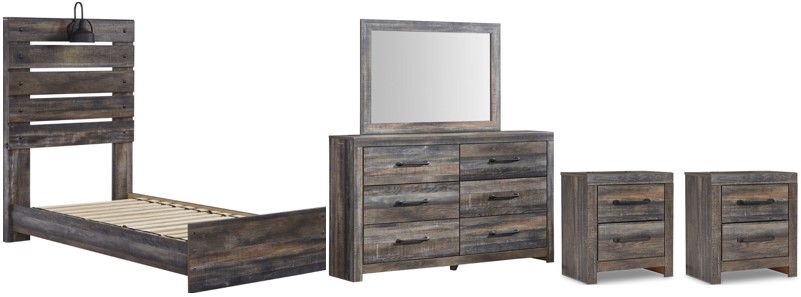 *Twin panel bed (headboard, footboard and rails), 6-drawer dresser with mirror, 5-drawer chest and two 2-drawer nightstands only, all other products are sold separately. Images may not reflect actual size. Furniture color in images may differ in person; see retailer for actual finish.