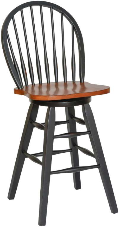 The TEI St. Michael Windsor black/woodtone 30" swivel bar stool combines function and comfort with its easy swivel feature and durable structure. Ideal for kitchen counters or home bars, it provides reliable seating and a warm, versatile appeal for everyday use.Read More